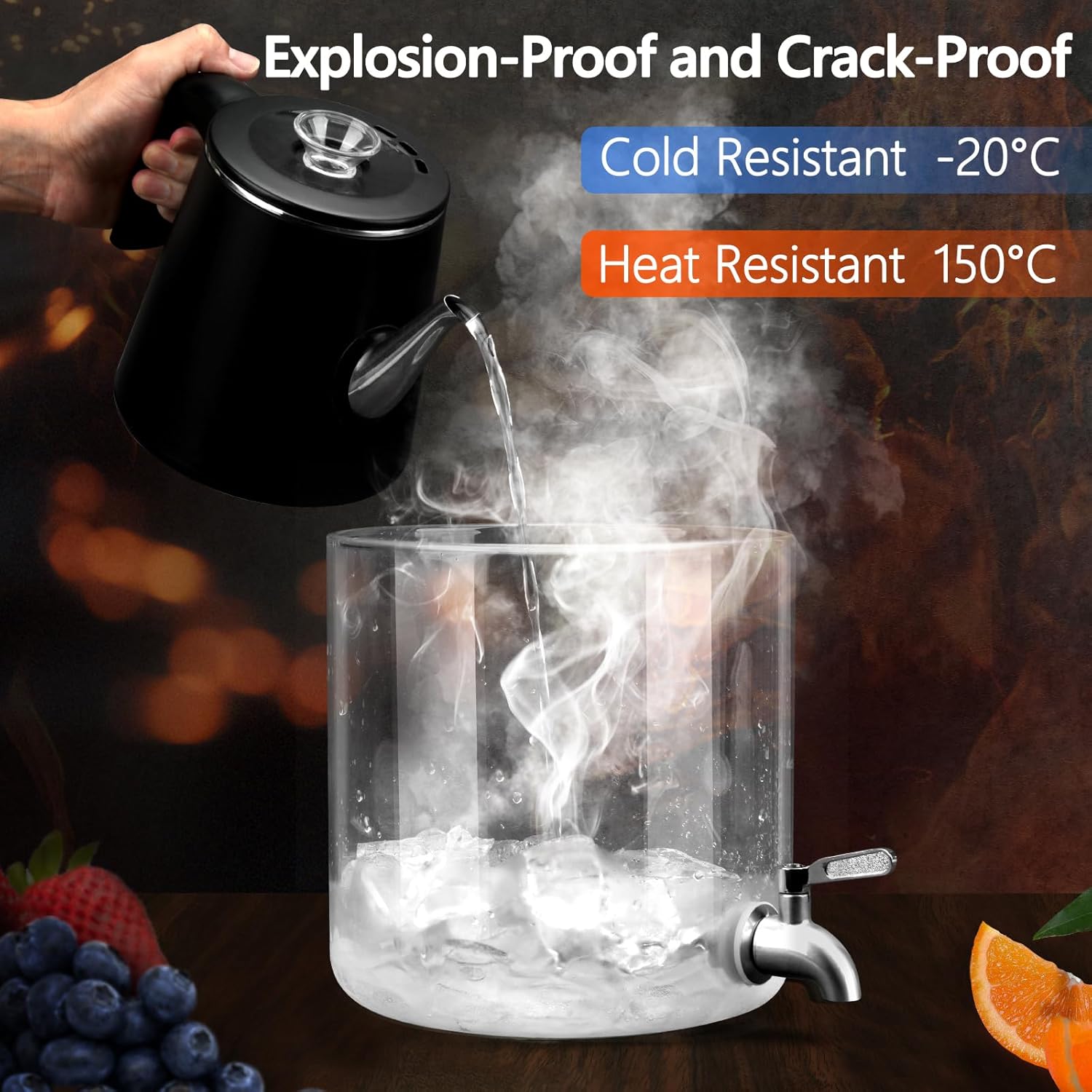 - Glaskanister mit Edelstahlhahn, bequem und schnell zu öffnen und zu trinken, glattes Wasser, robust und langlebig, lange Nutzungsdauer.