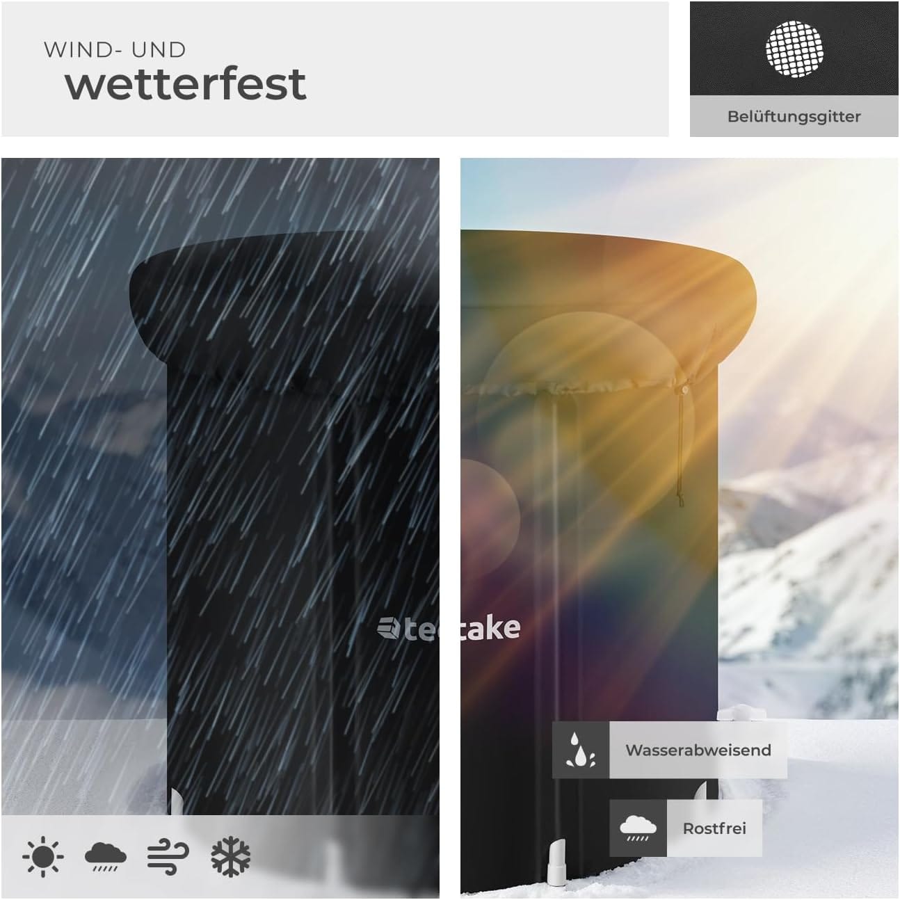 Die Badewanne verfügt über eine innovative Dreischichtisolierung, die niedrige Wassertemperaturen über längere Zeiträume effektiv aufrechterhält. Diese Effizienz wird durch eine temperaturstabilisierende Abdeckung weiter verbessert, die mit einem Belüftungsgitter und einem sicheren Kordelzug ausgestattet ist, um das Wasser vor Verunreinigungen zu schützen und gleichzeitig die Kälte zu bewahren.
